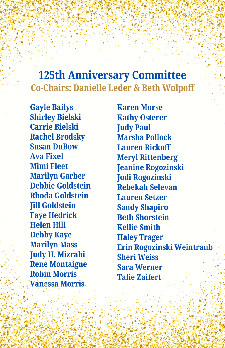 Rabbi Jonathan & Susan Krinsky LublinerKathy & Morrie OstererPRI ProductionsThe Rostholder FamilyThe Ruby FamilyJudy & Steve Silverman